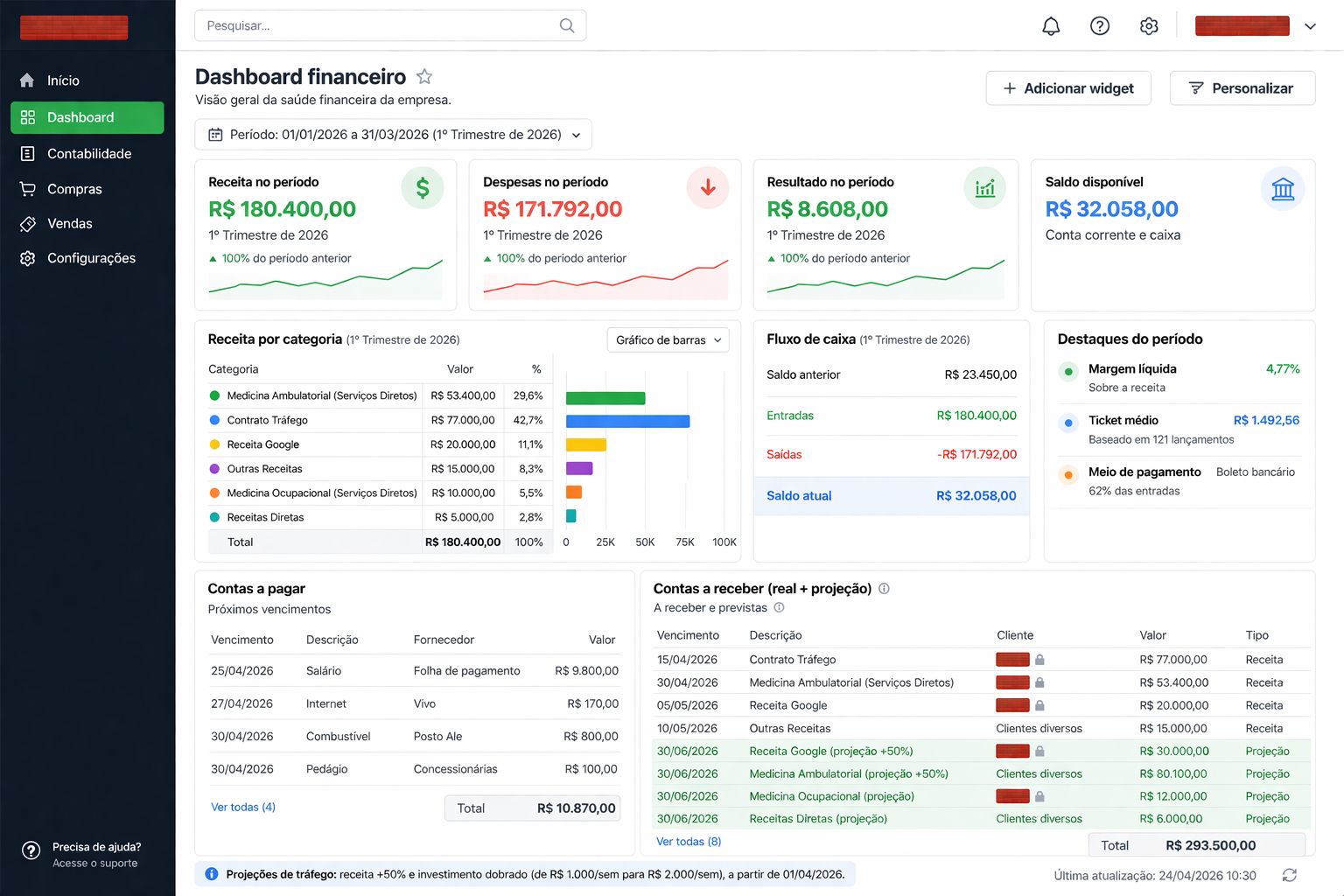 Precificação, DRE, fluxo de caixa e projeções para crescimento seguro.